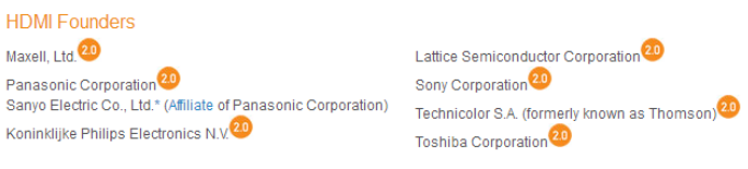 如图所示,在MIPI和HDMI联盟中,东芝都处于主要贡献者