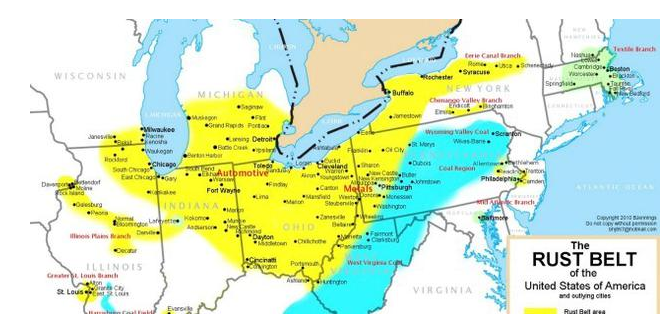 丰田和本田为代表的日本汽车在美国市场份额一度达到20%,年出口额达到240亿美元,成为美国最大的进口汽车国家。单是美国汽车业,八十年代初就有6万工人失业。在日本厂商的冲击下,美国传统制造业基地五大湖区的企业出现破产,导致大批工人失业。“铁锈带”(Rust Belt)这个名称正是起源于上世纪七八十年代。
