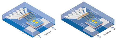 此作法是在传感器芯片上整合垂直及水平霍尔传感器而成。 垂直霍尔传感器侦测平面方向的x及y场分量,水平霍尔传感器则侦测垂直方向的z场分量。
