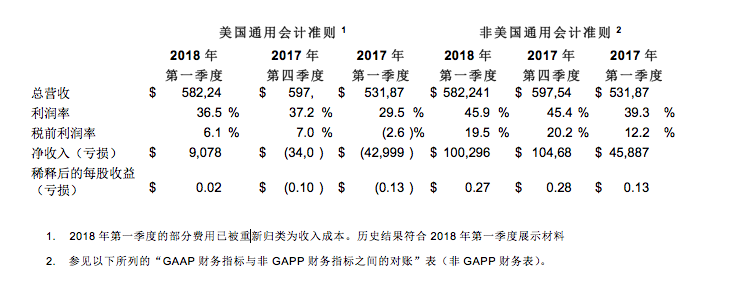 赛普拉斯2018年第一季度总营收为5.822亿美元,同比增长9.5%