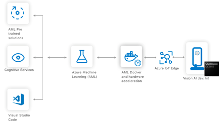 实现上述工作的关键要素在于视觉人工智能开发包(Vision AI developer kit)。该开发包旨在结合用于提供边缘智能的软硬件并集成Azure机器学习(Azure Machine Learning)和Azure IoT Edge。它利用Qualcomm视觉智能平台(Qualcomm Vision Intelligence Platform)和Azure机器学习,以支持具有先进人工智能功能的相机,并全部由Azure进行集中管理。为此,该开发包会运行Azure IoT Edge,支持Azure向开发包部署Azure机器学习模型。Azure IoT Edge还可支持本地部署、执行自定义代码以及其他Azure服务,如Azure流分析和Azure认知服务,可从Azure云平台下载并在边缘本地运行。