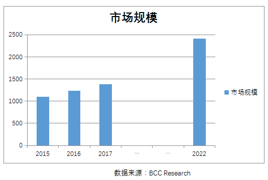 作为物联网的基石,传感器的市场规模庞大,根据专门的市场调研机构BCC Research及Allied Market Resarch的预测,从2017到2022年,全球传感器将达到2410亿美元的市场规模。