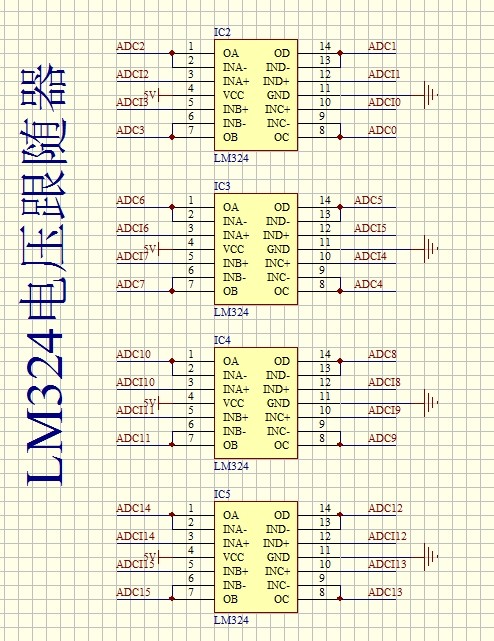 下面介绍一种利用STM32单片机制作的16路多通道ADC采集电路图和源程序。采用USB接口与电脑连接,实则USB转串口方式,所以上位机可以用串口作为接口。电路图中利用LM324作为电压跟随器,起到保护单片机引脚的作用。直接在电脑USB取点,省去外接电源麻烦,实测耗电电流不到20ma.