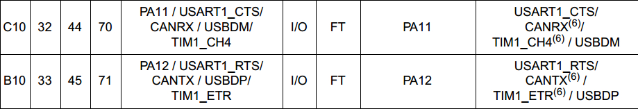 我的板子硬件原理图上是PA11 PA12,是按照手册来设计的,