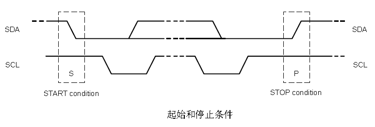 起始和停止条件一般由主机产生,总线在起始条件后被认为处于忙的状态,在停止条件的某段时间后总线被认为再次处于空闲状态。