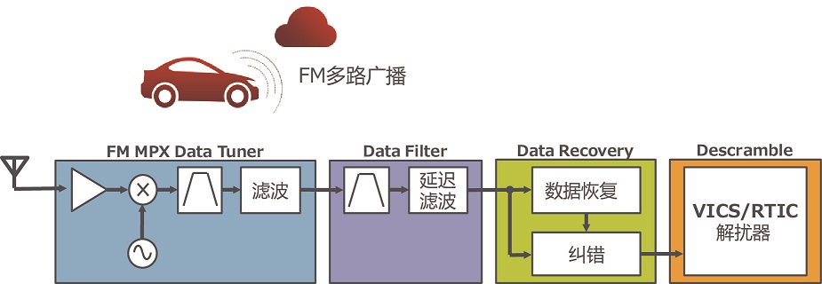 以往的汽车搭载了ETC、VICS(图2)、TV及GPS等以基本接收功能为前提的通信功能。这些功能使得驾驶人员和乘坐人员能够获得更佳的舒适体验。