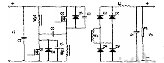 新型推挽正激变换器有以下优点:有效抑制开关管的电尖峰、提高下作效率、抑制磁芯偏磁、减小输入电流脉动等。