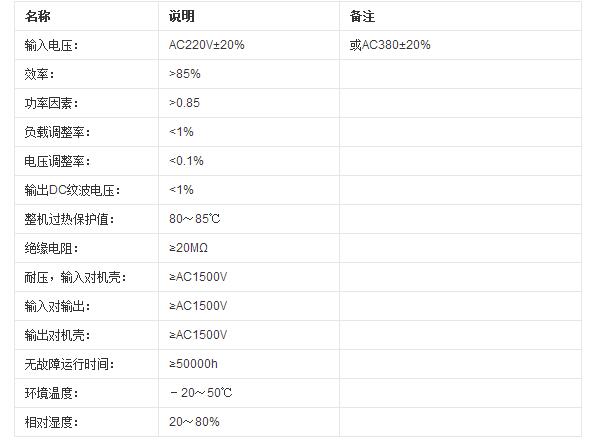 蓄电池充电器主要技术参数