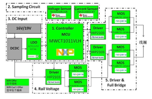图示1-大联大世平推出基于NXP MWCT1011VLH的15W单线圈定频无线充电解决方案系统架构图