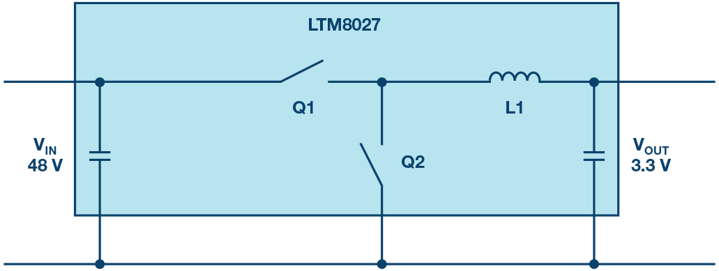 图1. 通过单一转换步骤将电压从48 V降至3.3 V