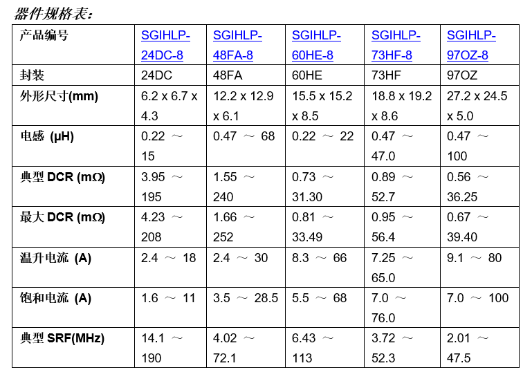 SGIHLP系列有5种外形尺寸,效率高,典型DCR从0.56 mW 到240 mW,电感值从0.22µH到100µH。器件基于已被证明十分有效的IHLP技术,额定电流可达100A,能处理高瞬变电流尖峰,而不会饱和。在整个工作温度范围内,电感器都能保持十分稳定的电感和饱和特性。
