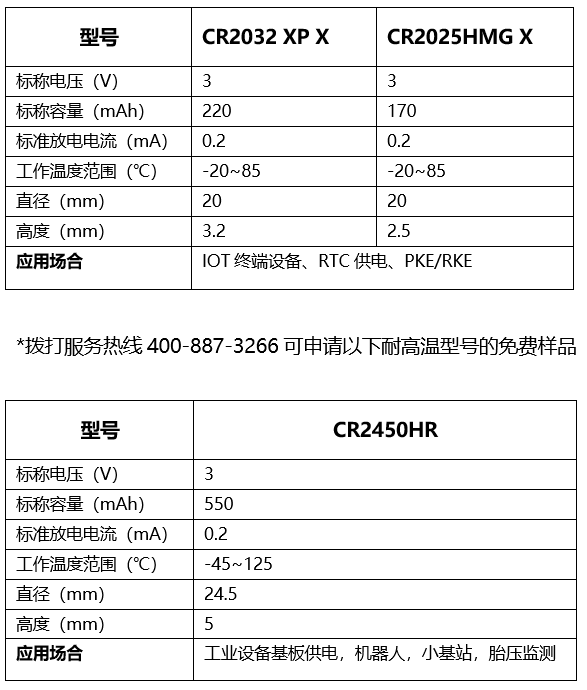 拨打服务热线400-887-3266,还可以申请耐高温型号CR2450HR的免费样品。