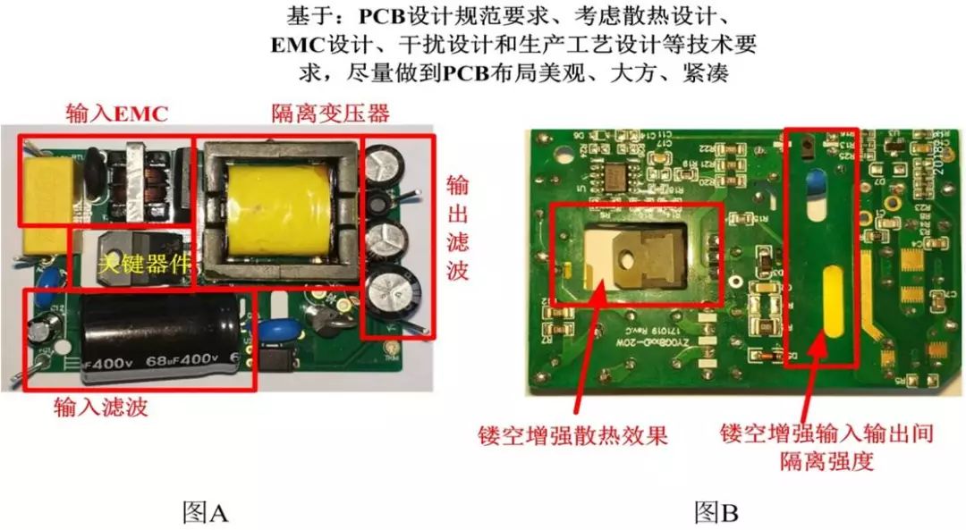 其二,电源模块的PCB的设计。因为模块电源产品有模块电源的PCB设计规范要求,它要考虑散热设计、EMC设计、干扰设计和生产工艺设计等等,涉及的内容非产多,所以PCB设计在模块电源产品开发过程中是作为最重要的环节之一来对待的,如图7所示。