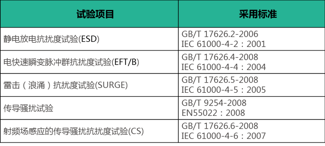 产品开发完成之后,并不能直接应用,为保证产品在实际应用中发挥最优性能,通常需要进行输入输出的每个性能测试、容差测试、瞬态条件测试、可靠性测试、EMC电磁兼容测试、高低温测试、极限测试、寿命测试、安规测试等测试,标准如下表1所示。,且很多性能指标的测试还要深入细化到多点测试、长时间的测试、重复反复测试和批量的测试,所以测试一个产品或一个项目,短则半个多月,多则一个月以上。致远电子拥有全套的测试设备及测试流程,如下表2所示。