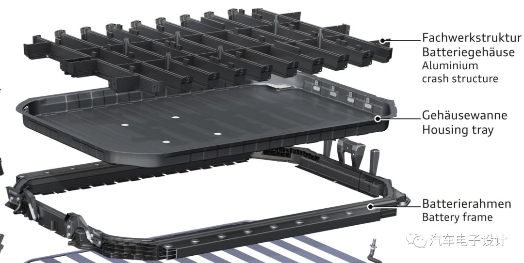 这个事情,也是工艺决定的,Audi挺早就采用方形的高压铸铝的轻量化电池结构,在较大面积的条件下,往回走,这个托盘结构让人感到还是很诧异的。