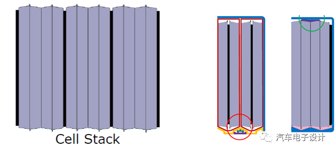 在新的模组设计中,电芯模组支架、散热片取消了,设计了新的散热方式,这样4个电芯成为一个小组,然后再通过中间的泡棉进行分割成一个单元,内部采取涂胶的方式进行连接形成一个整体。
