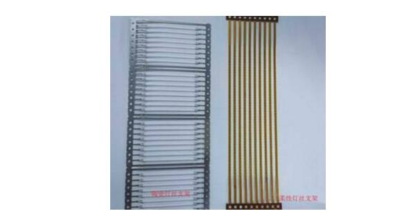 目前灯丝灯的基板主要分为两大类,硬性基板和柔性基板,硬性支架通常用量较多的有陶瓷和铜支架,柔性支架主要为FPC(聚酰亚胺或聚酯薄)、BT(树脂板)、PE(聚乙烯)支架,如下图所示。