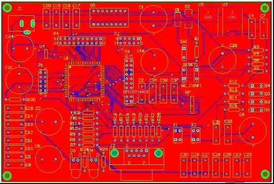 画FPGA开发板所犯的那些错误,小编这里先截下我最初画这个开发板的一张“惨不忍睹”的PCB让大家看看。