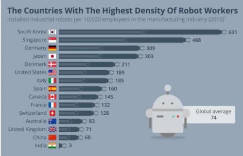 全球机器人使用情况调查,韩国自动化程度惊人