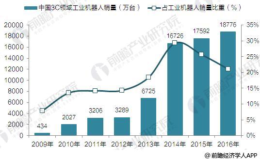 前瞻产业研究院分析认为,3C领域对机器人的需求主要体现在两个方面,第一是由于3C市场体量急剧扩大带来的总量需求;第二则是由于3C产品精细化、轻薄化趋势对工艺设备的要求越来越高。