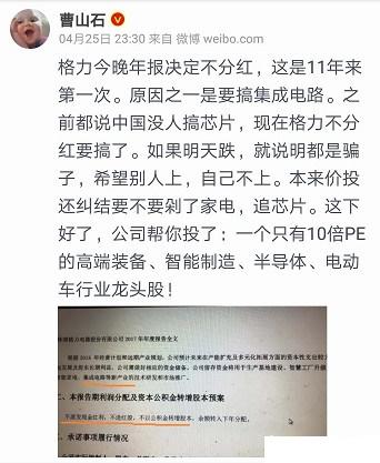 回到格力这件事,微博知名用户曹山石针对格力给出了他的评价: