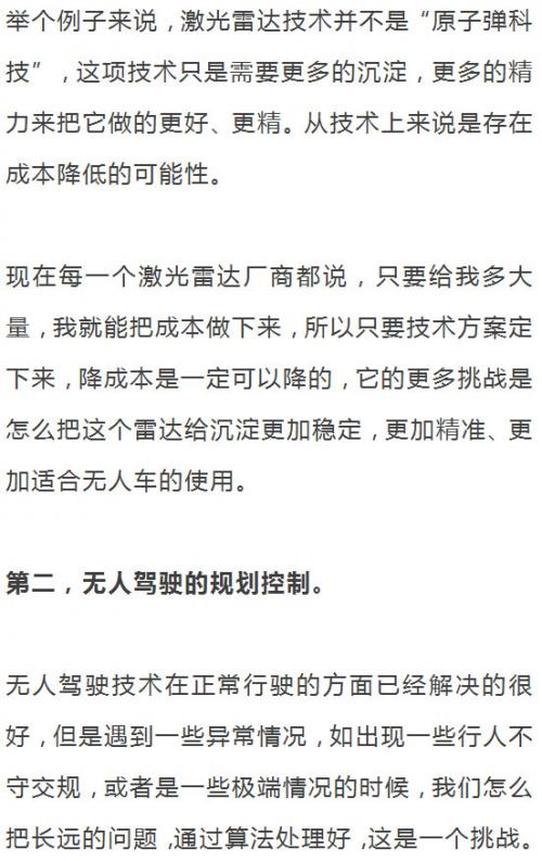 成本是很难降下来,便宜的传感器,又不能达到安全的要求,所以在价格和安全性和能力之间的平衡是急需解决一个重要的问题。