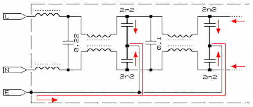 图1.4.1 电磁兼容滤波器中的漏电流