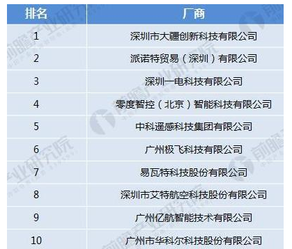 图表4:2017年中国十大航拍无人机企业排名