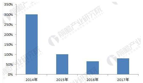 图表5:2014-2017年大疆创新市场规模同比增幅(单位:%)