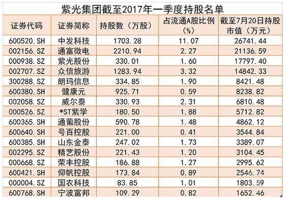 据公开资料统计,紫光集团除了旗下紫光国芯、紫光股份、*ST紫学3家A股上市公司,紫光系还出现在了26家A股上市公司的前十大流通股东之列,这些公司的主营业务已经与原来的芯片产业相去甚远。
