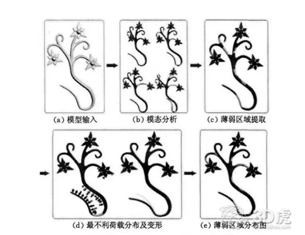 文献中的方案有效地提高了模型的结构性能,避免了高强度应力区域的出现。但是该方案的最大局限在于:在结构强度检测时,系统需要先预设模型可能承受的外部荷载情况,并据此对模型显式地指定一种或几种捏握式外部荷载来进行结构强度计算。当然,同时还需考虑模型的重力荷载。显然,对很多模型来说,这种预设的荷载并不能很好地反映模型的真实荷载分布,因此其结构分析结果的真实性与可靠性也就不能很好地保证了。