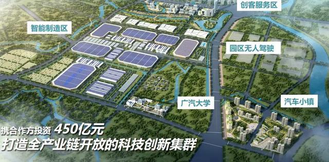 广汽智联新能源汽车产业园将围绕“智能制造 创新研发 汽车小镇”三大领域,重点布局汽车制造、汽车研发、汽车金融、汽车文化、汽车旅游、汽车商贸等六大业态,形成“一轴两廊三区”的功能分区(“一轴”是产城融合生态轴;“两廊”是七沙涌生态廊道、金山-莲花山生态廊道;“三区”是智能制造区、创客服务区、汽车小镇),发展成为“中国制造2025”发展典范。