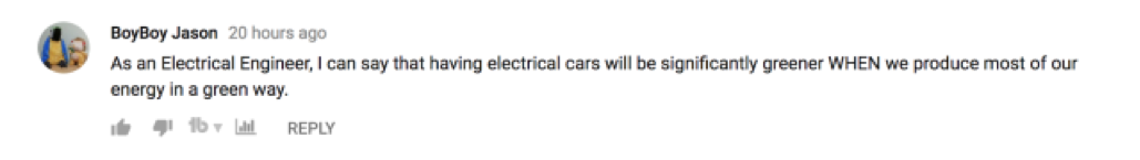 网友BoyBoy Jason:作为一个电子工程师,我可以很负责的告诉你们,电车绝对会帮助我们改善环境的!