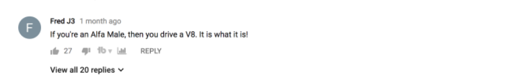 网友Fred J3:真正的优等男人都开V8大马力汽车!男人就是男人!