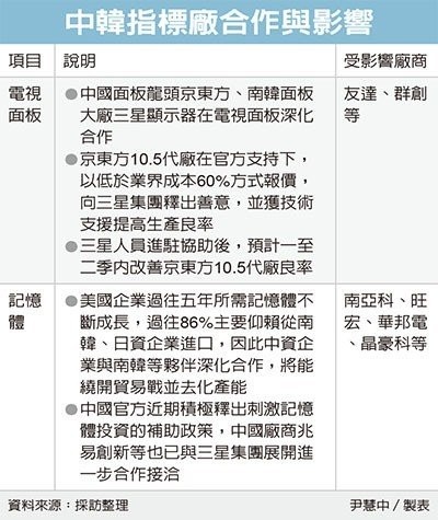 这意味未来中国与韩国将扩大双D(存储器、面板)结盟,对面板双虎群创、友达,以及南亚科、旺宏、华邦电等存储器厂,都将是考验。