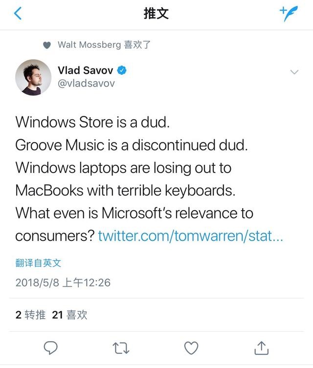 在 Keynote 环节将要结束的时候,一位科技记者忍不住在推特上发问:Windows 商店没做起来,Groove Music 彻底死了,Windows 笔记本还不如键盘有问题的 MacBook,微软现在和消费者还有什么关系呢?