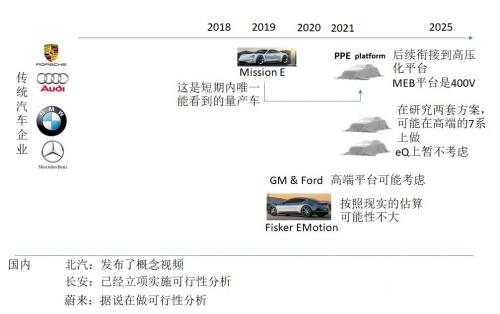 其实按照Musk的个性,总是要做到最好,但是在这点上,如果系统上不做变革,从功率上肯定是没办法去做的。短期内来看,德国主导的高压化的过程,需要在比较完整的条件下才会逐步出来。其他美国的几家车企都会观望成分大一些。
