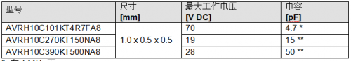 • 小型尺寸 1.0 mm x 0.5 mm x 0.5 mm