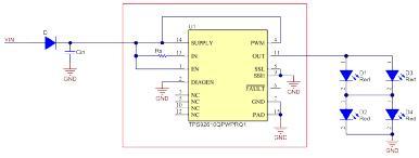 图2:TPS92610-Q1集成LED驱动电路