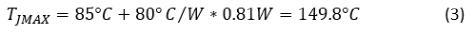 假设最高工作环境温度为85°C,并且在热阻为80°C / W的小外形晶体管(SOT)-223封装中使用BJT,则等式3计算的最大BJT结温为: