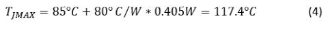 假设最高工作环境温度为85°C,并且在热阻为80°C / W的小外形晶体管(SOT)-223封装中使用BJT,则等式3计算的最大BJT结温为: