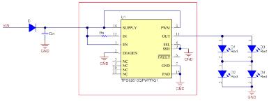 图2:TPS92610-Q1集成LED驱动电路