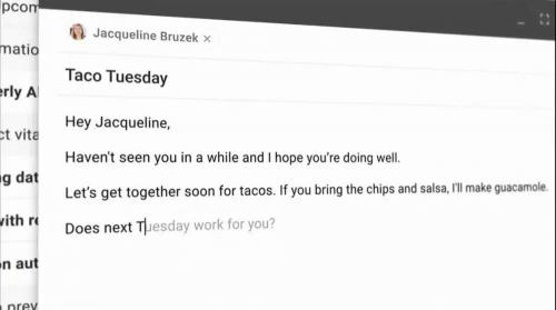 在继续拓展语音和视觉方面技术应用的同时,Google还带来了终极的英文邮件撰写“作弊器”,用户在敲下前几个字母或者词的时候,系统就会根据上下文推荐最有可能的内容,现场实测只需十来个字母、加上几个空格键就能完成一封邮件。