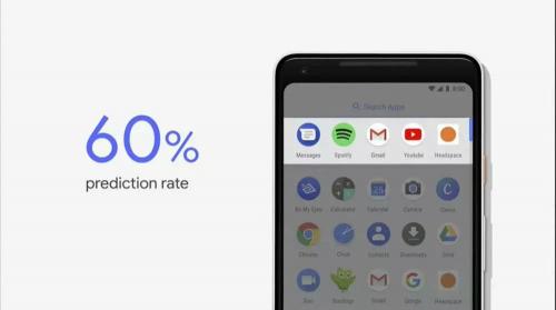然后是全新登场的Android P系统,虽然系统改动了不少,但是最吸睛的或许还是要算系统根据用户使用习惯、时间的因素,在应用库的顶层直接进行主动推荐的设置。