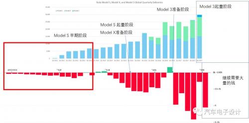 把整个起量的过程和Tesla公司的自由现金流来看,我们可以看到: