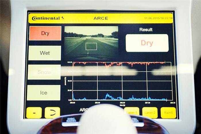 同时,利用前保险杠处的红外线激光测量轮胎前方路面光发射振幅的变化。此外,车辆的防抱死系统将测试路面光滑度与粗糙度间的差值。然后将上述数据相整合,为辅助系统提供辅助。如必要,还能提前启用自动紧急制动系统。这就好似为用户提供了一款私人天气预报员兼领航员。