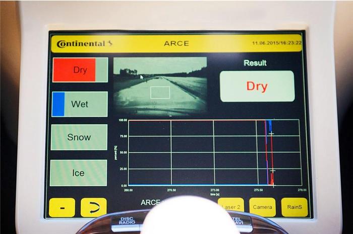 其最初的输入数据源自于从最近气象站下载的数字天气图,车载GPS负责定位该气象站。随后,将温度、湿度及空气等数据相结合,系统将计算出下雨或下雪前所需的露点(dew point)及冷空气数量。最后,再采用摄像头图像,利用算法测试道路是否湿润、干燥、潮湿,可通过镜面反射或颜色等特性来加以识别。
