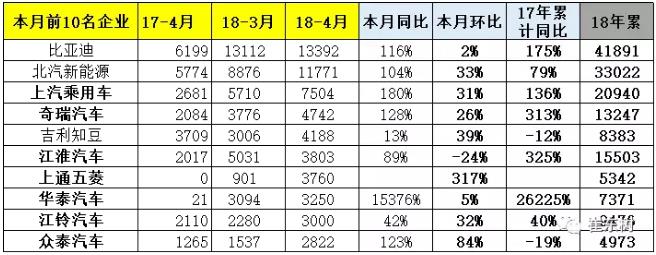 具体车型方面,北汽新能源EC系列4月销量为7471台,同比增长72%,环比下跌4%,排名第一;