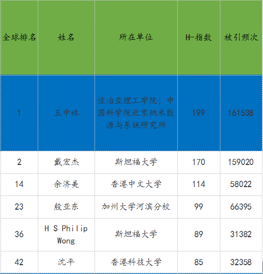 这一次,王中林院士全球第一!越来越多中国学者做到全球顶尖!