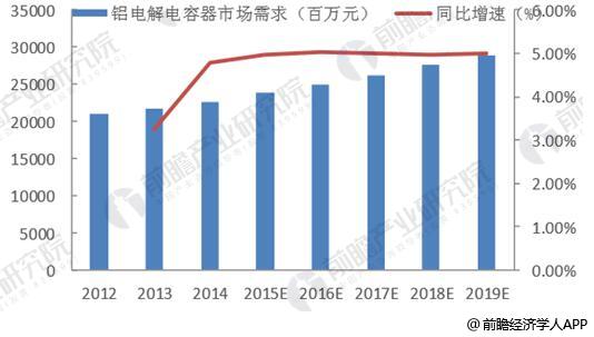 2012-2019年中国铝电解电容器市场需求规模发展趋势与预测(百万元)